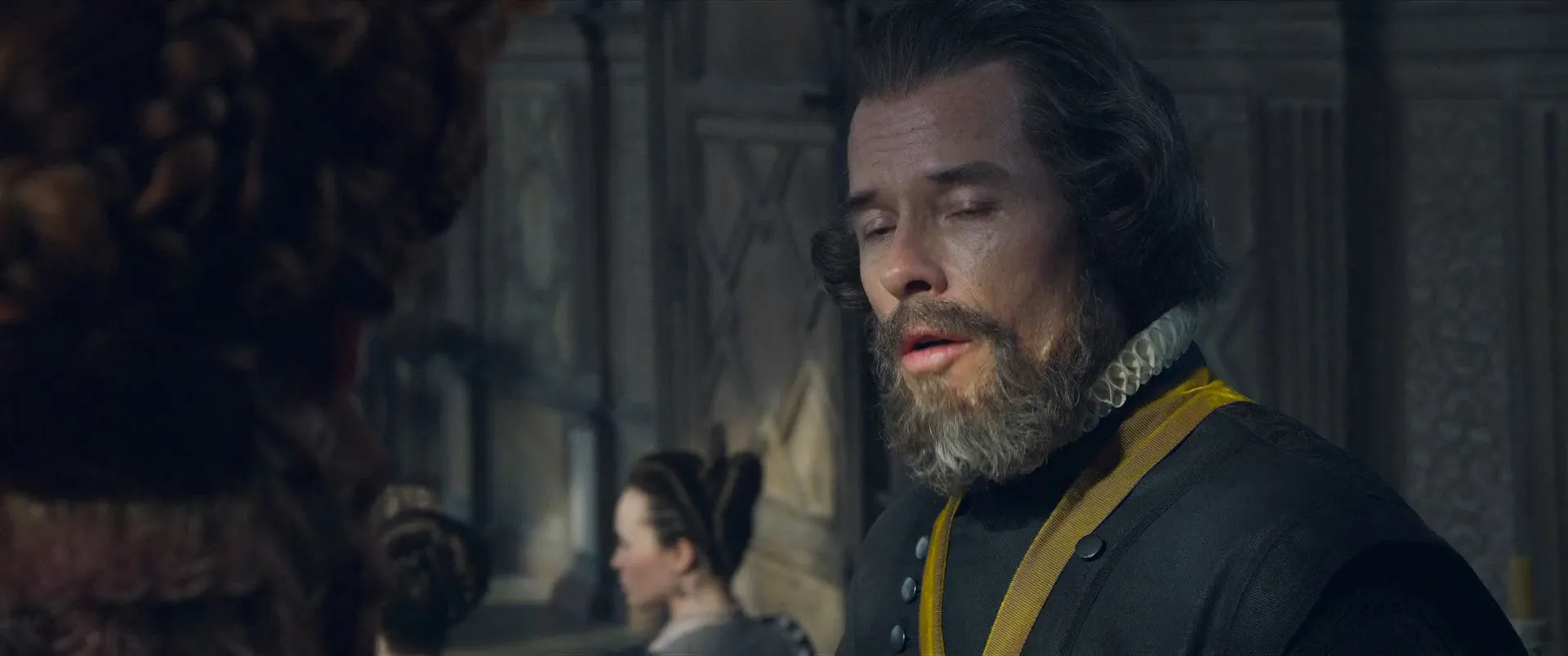 Starring: Saoirse Ronan as Mary Stuart, Margot Robbie as Queen Elizabeth I, Jack Lowden as Henry Darnley, Joe Alwyn as Robert Dudley, David Tennant as John Knox, Guy Pearce as William Cecil, Gemma Chan as Bess of Hardwick, Martin Compston as Earl of Bothwell, Ismael Cruz Córdova as David Rizzio, Brendan Coyle as Earl of Lennox, Ian Hart as Lord Maitland, James McArdle as James, Earl of Moray, Richard Cant as Thomas Andrews, Guy Rhys as Earl of Kent, Thom Petty as Earl of Shrewsbury, Izuka Hoyle as Mary Seton, John Ramm as Bull, Simon Russell Beale as Robert Beale, Maria Dragus as Mary Fleming, Liah O'Prey as Mary Livingston, Eileen O'Higgins as Mary Beaton, Greg Miller Burns as Thomas Hepburn, Aneurin Pascoe as John Hepburn, Adrian Derrick-Palmer as George Dalgleish, Kal Sabir as The Laird of Ramorny, Luke Kidd as James Haliburton, Adrian Lester as Lord Randolph, Georgia Burnell as Kate Carey, Alan Turkington as Thomas Jenye, Euan MacNaughton as William Kirkcaldy of Grange, Scot Greenan as Hector Maclean, Karen Dunbar as Commoner, Ian Hallard as Sir Richard Knightley, Andrew Rothney as King James I, Angela Bain as Snuffer Woman, Abby Cassidy as Fotheringhay Gentlewoman, Shalisha James-Davis as Fotheringhay Gentlewoman, Adam Bond as Sir William Douglas, Katharine O'Donnelly as Young Holyrood Servant, Grace Molony as Dorothy Stafford, Luke Hobson as Henry Killigrew, Ben Wiggins as John Tamworth, Eldredd Wolf as William Killigrew, Eric MacLennan as Portrait Painter, Nathen East as Andrew Ker of Fawdonside, Daniel Booroff as Knox's Secretary, Sean Buchanan as Francis Yaxley, Matthew Pidgeon as Wedding Announcer, Benjamin Barraclough as Officer, Jordan Turk as James MacDonald, Adam Stevenson as Urie Campbell, Scot Greenan as Hector MacLean, Chris Grahamson as Moray's Drummer, Ed Jones as William Taylor, Owen Gorman as Bishop, John Stahl as Fisherman, Kadiff Kirwan as Attaché, Alex Beckett as Sir Walter Mildmay, Will Rowlands as Soldier