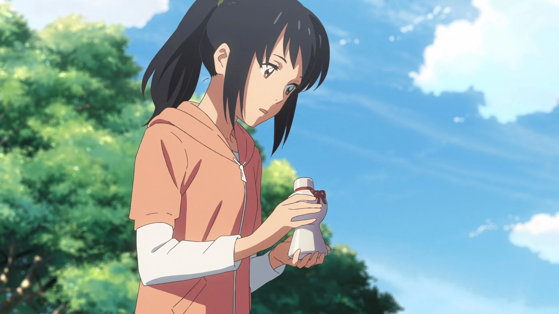 Mitsuha is the daughter of the mayor of a small mountain town. She's a straightforward high school girl who lives with her sister and her grandmother and has no qualms about letting it be known that she's uninterested in Shinto rituals or helping her father's electoral campaign. Instead she dreams of leaving the boring town and trying her luck in Tokyo. Taki is a high school boy in Tokyo who works part-time in an Italian restaurant and aspires to become an architect or an artist. Every night he has a strange dream where he becomes...a high school girl in a small mountain town.